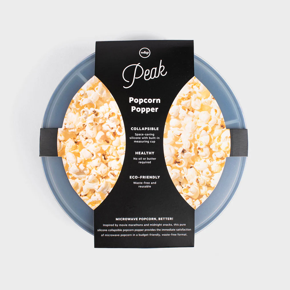 - Collapsible BPA-free silicone popcorn bowl; microwave & dishwasher safe